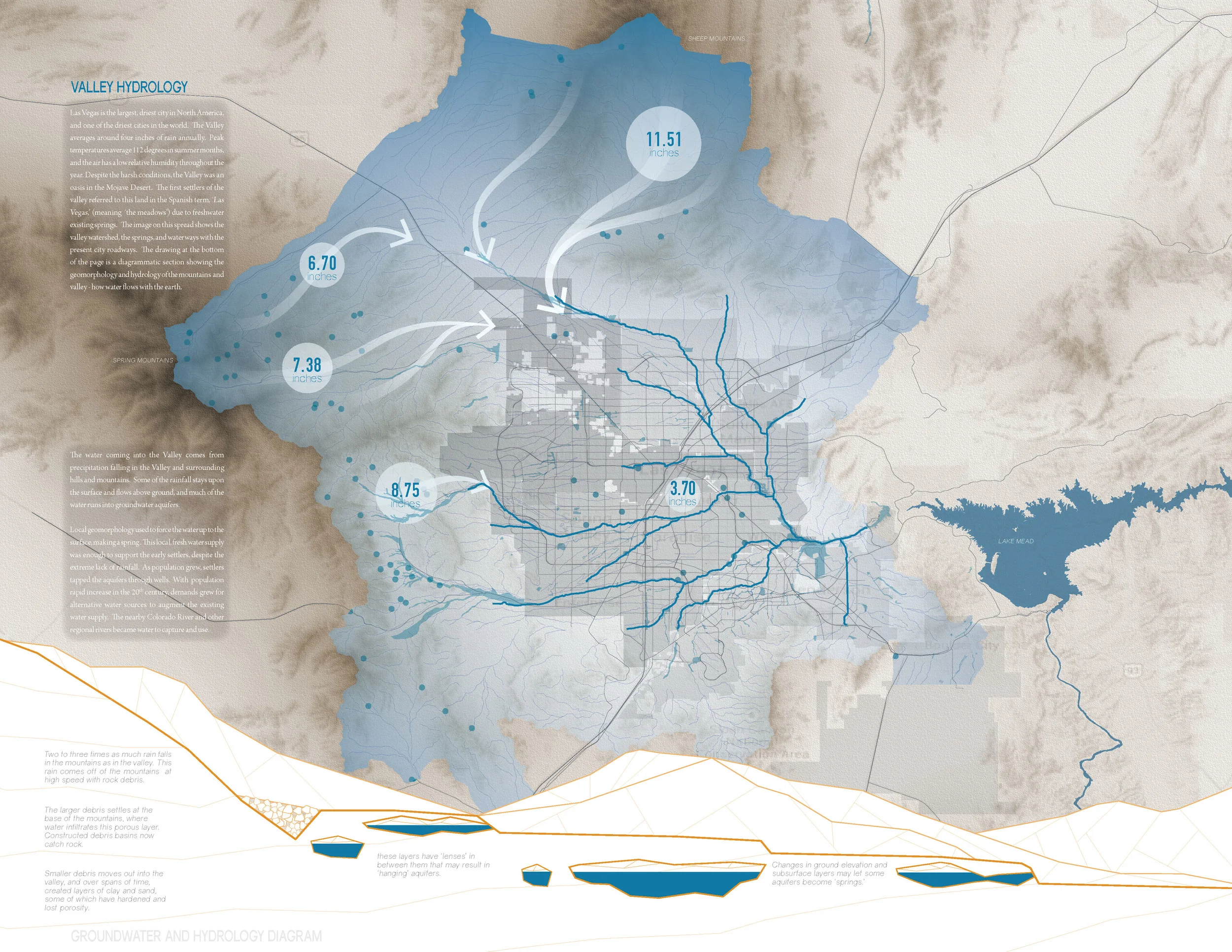 The hydrology of the metro area - it is the driest in the world of its size, only getting three and a half inches of rain per year.