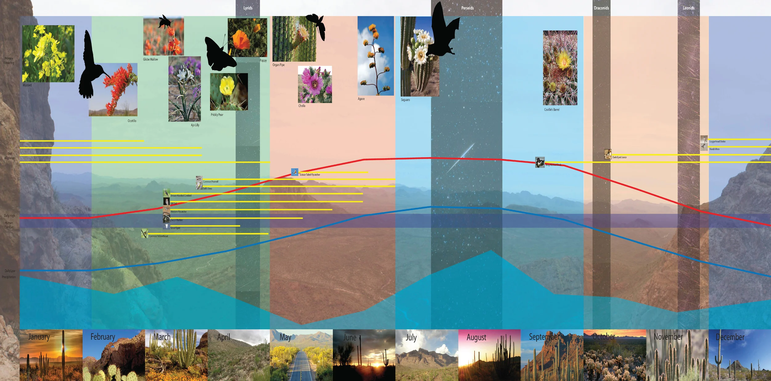 This image demonstrates how students are able to connect scientific information with perception. Due to the power of photography databases, students can find perceptual images showing how the scientific information appears in their landscapes. The Sonoran Desert is interesting as a challenge to preconceptions as it is a five season landscape, noticeable through these images. (click to enlarge)