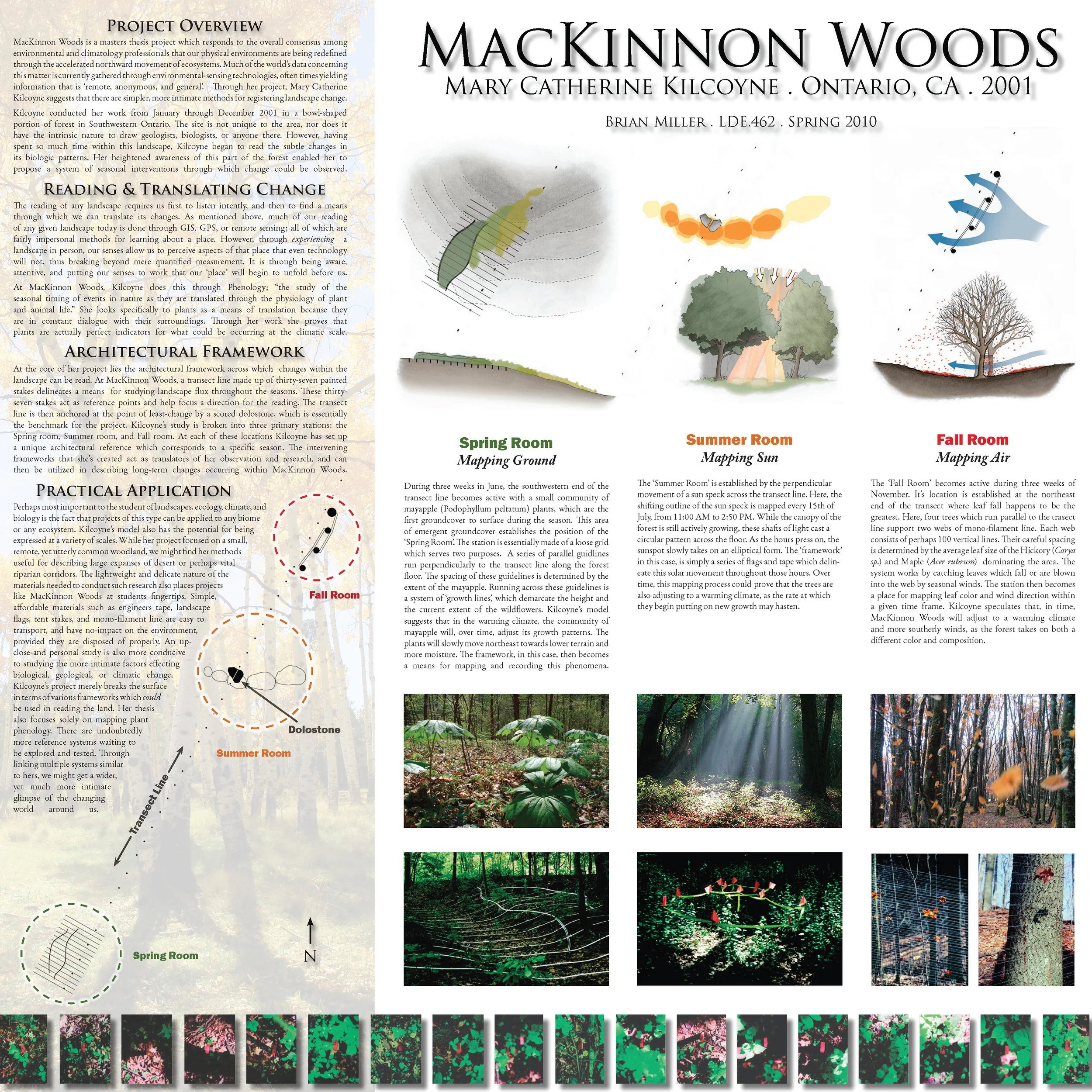 Precedents studies show students how design may be used to reveal processes. The combination of painting, scientific research, site visits, precedents studies, analysis and design modeled in scenarios of process and perception gives students a comprehensive study in ecological literacy and design.