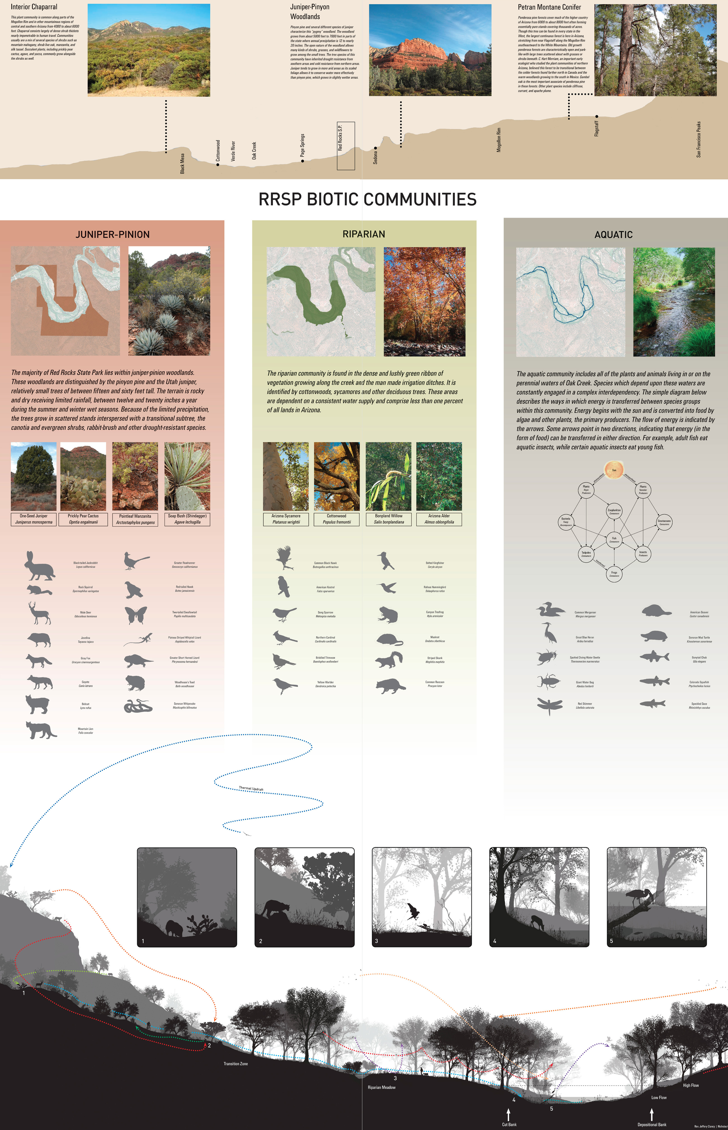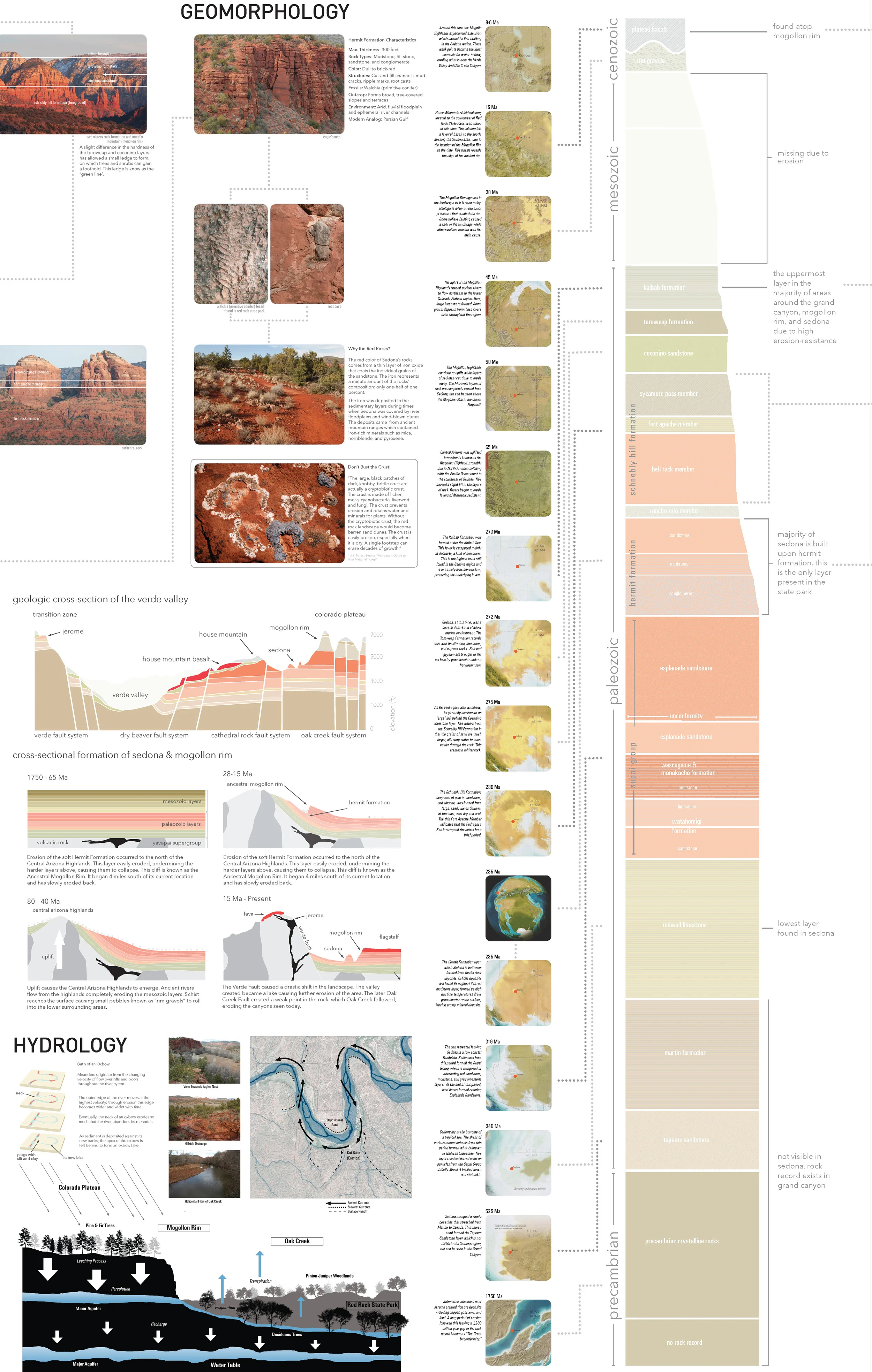 In this study of Red Rocks State Park in Arizona, the geomorphology and hydrology dramatically impact how the landscape functions. Also millions of years of history are exposed, and maps can now show where the location of the site was at any point in history along with the conditions of the planet at the time. (click image for lightbox view)