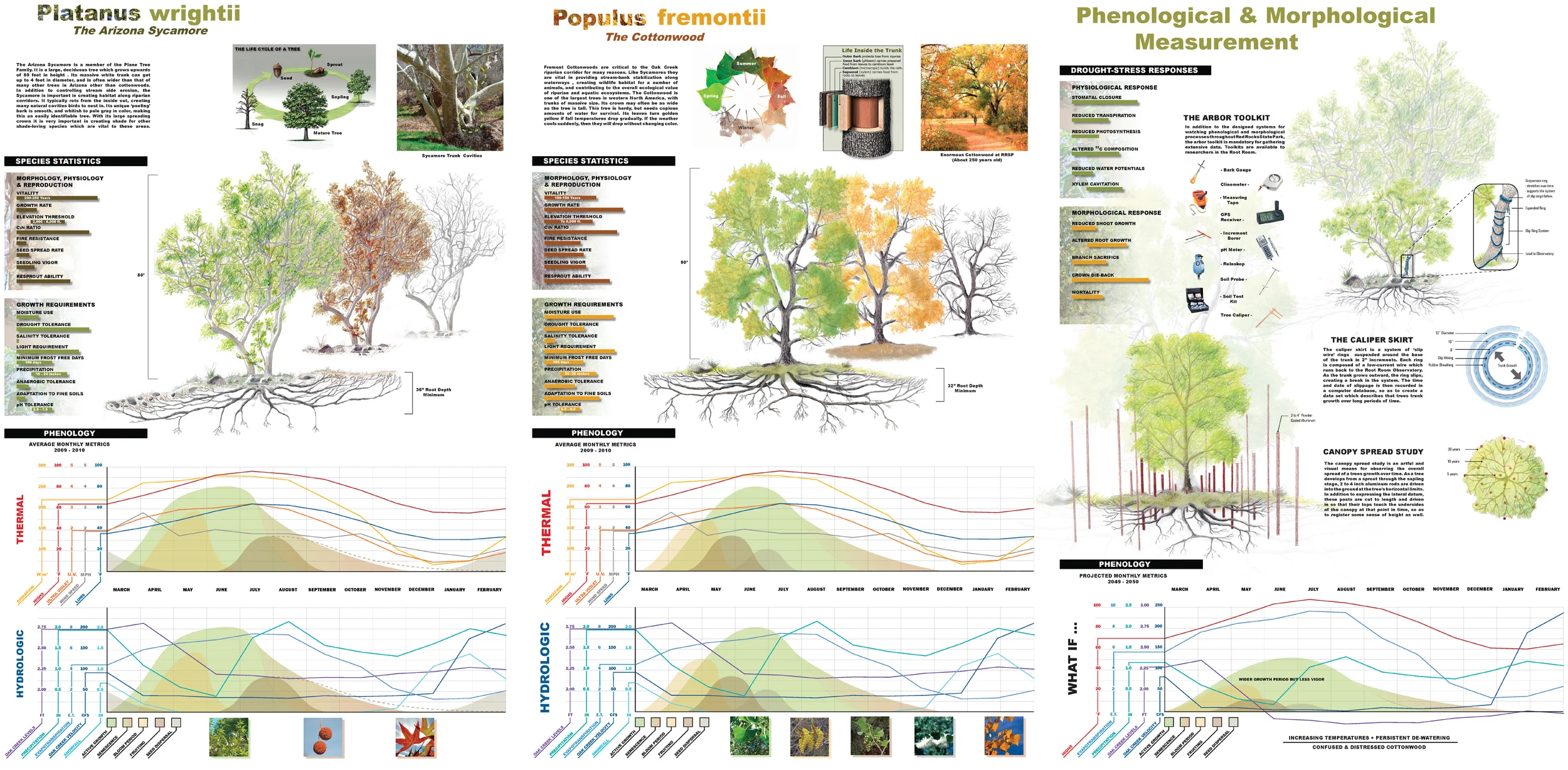 Students then take several field trips to their sites to discover the places, and do scientific research to understand geomorphology, soils, climate and flora and fauna. After this foundation sets, student pick a process they feel defines their landscape. Then then model the process and the phenologies to see how elements work in time as well as space.